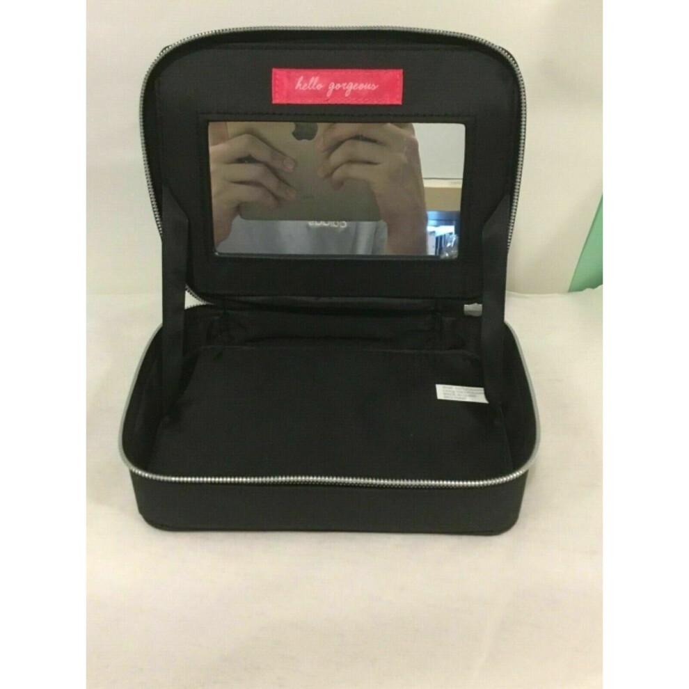 Bare Minerals Hello Gorgeous Zippered Black Makeup Bag with Mirror - Cosmetic Case