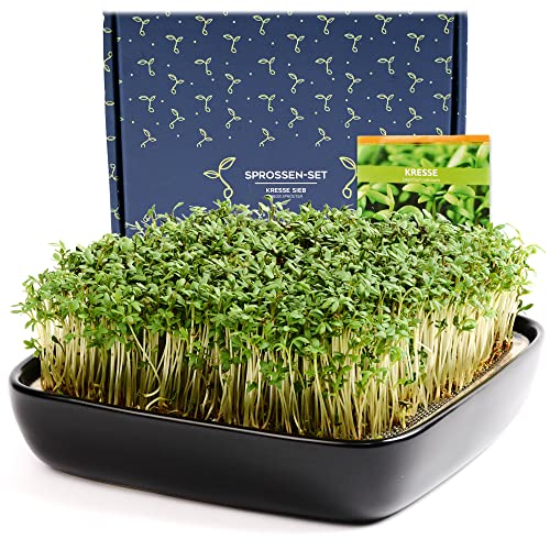 Otaro Cress Propagation Trays Including Cress Seeds (Black) | Get Started | Elegant Cress Sieve, Germination Bowls for Sprouts, Germination Bowl | Perfect as a Thank You Gifts (Premium Ceramic Set)