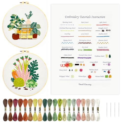 HAND U JOURNEY Get Started with Embroidery Basic Stitch Kit for Beginners with 28 Different Stitches and 2 Plant & Home Themes - Perfect for Craft Lovers!