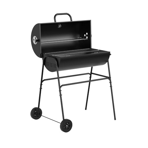 House Of Home XL Barrel Charcoal BBQ Grill – Large Black Smoker with Thermometer, Wheels, Ash Catcher & Side Vents – Portable Garden Coal Barbecue for Outdoor Cooking