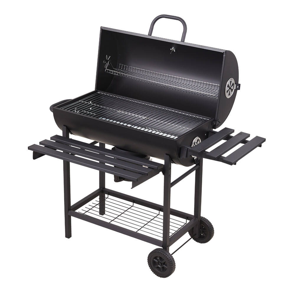 Portable Barrel Charcoal BBQ Grill Smoker with Side Shelves