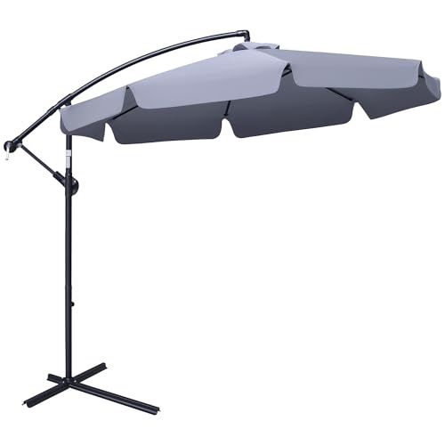 Outsunny 3(m) Garden Banana Parasol Hanging Cantilever Umbrella with Crank Handle, 8 Ribs and Cross Base for Outdoor, Sun Shade, Grey