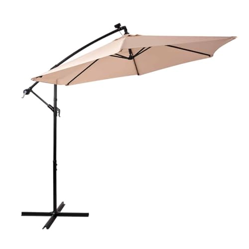 Nustone 3 Metre Round Cantilever Parasol, Patio Umbrella with UV Protection, Steel Frame for Ultra Stability and Solar LED Lights for Outdoors, Garden and Terraces (Beige with Base)