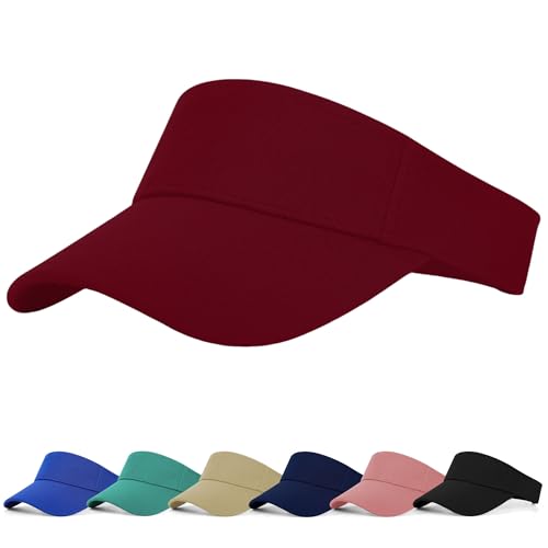 FCHUI Sun Visor Cap - Women Ponytail Baseball Cap for Women and Ladies, Long Peak Thicker Sweatband Adjustable Hat for Golf Cycling Fishing Tennis Running Jogging Visor Hats for Men (Burgundy)