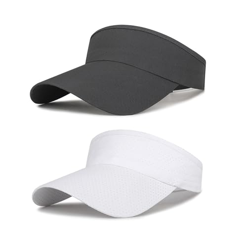 FOUNSHO 2PCS Sun Visor Cap for Men Women, Ladies Sport Outdoor Empty Top Ponytail Baseball Hat Quick Dry Mesh Summer Adjustable Visor Hats for Golf Tennis Running (UK, Alpha, M, L, Black+White)