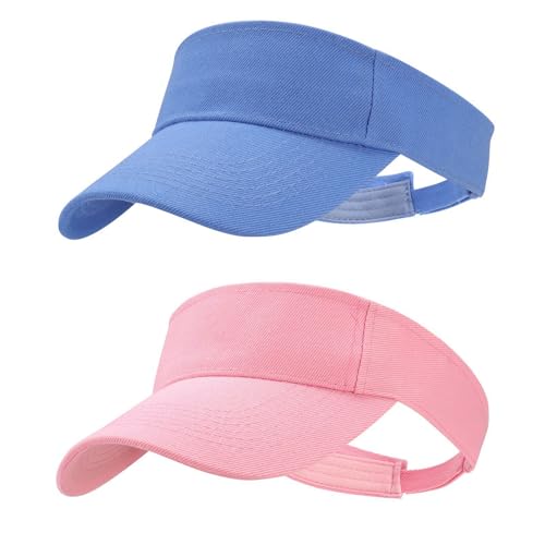 Sun Visor Cap,2Packs Women Ponytail Baseball Cap for Women and Ladies,Long Peak Thicker Sweatband Adjustable Hat for Golf Cycling Fishing Tennis Running Jogging Visor Hats for Men(Pink,Sky Blue)