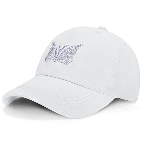 Kordear Womens Baseball Cap - Butterfly Pattern Ladies Adjustable 100% Cotton Peak Cap Golf Running Hat Outdoor Sports for Women UK White