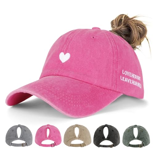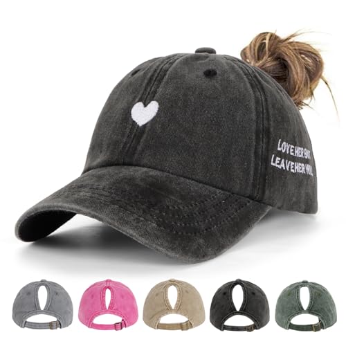 Acado Ponytail Baseball Cap for Women - Distressed Vintage Washed Adjustable Embroidered High Bun Hat Ladies
