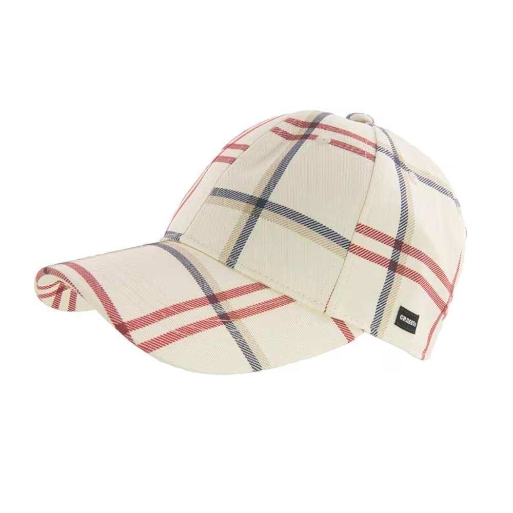 Craggi Baseball Cap Checkered Style Head Hat Ladies Mens Vintage Cream & Red