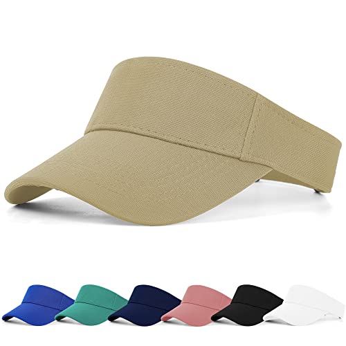 FCHUI Sun Visor Cap - Women Ponytail Baseball Cap for Women and Ladies, Long Peak Thicker Sweatband Adjustable Hat for Golf Cycling Fishing Tennis Running Jogging Visor Hats for Men (Khaki)