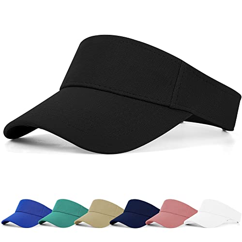 FCHUI Sun Visor Cap - Women Ponytail Baseball Cap for Women and Ladies, Long Peak Thicker Sweatband Adjustable Hat for Golf Cycling Fishing Tennis Running Jogging Visor Hats for Men (Black)