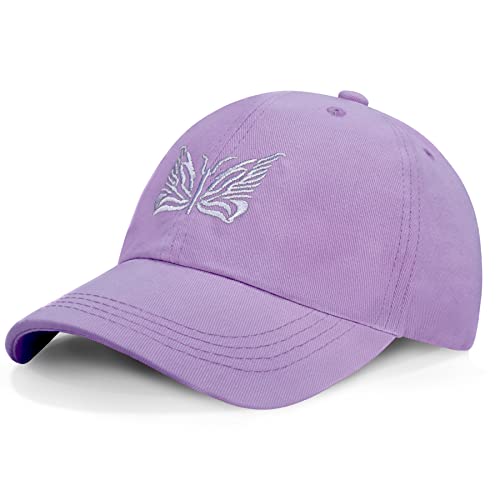 Kordear Womens Baseball Cap - Butterfly Pattern Ladies Adjustable 100% Cotton Peak Cap Golf Running Hat Outdoor Sports for Women UK Purple