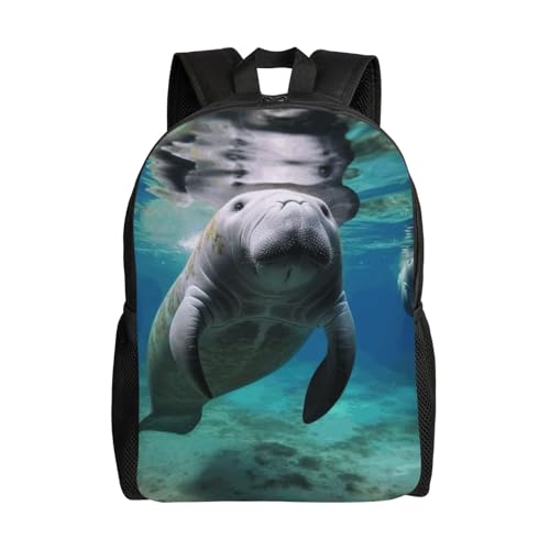 Waterproof Sports Bag Ocean Animal Manatee Rucksack Basic Book Bags for Work, Travel, Camping, 42X32X14Cm