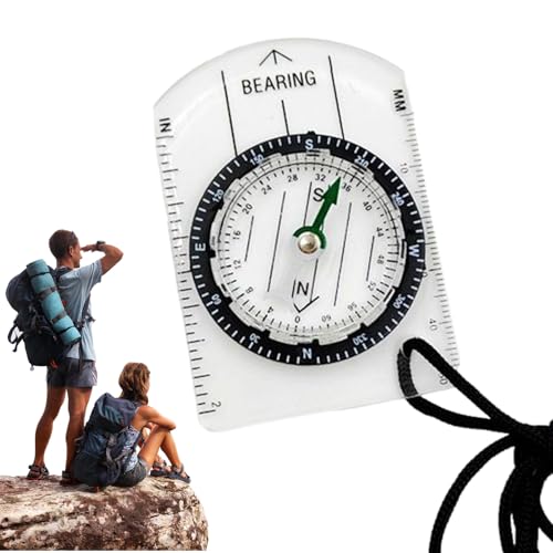 Survival Compass - Clear Acrylic Map Reader Basic Tool for Orientation | Navigation With Cord, Ruler Markings For Hiking, Camping In Ple