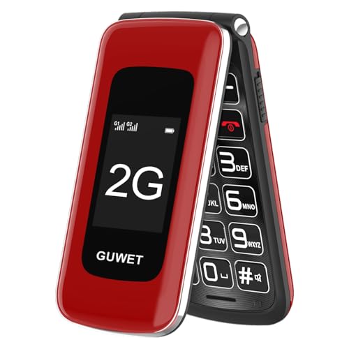 Guwet 2G Big Button Mobile Phone for Elderly, Flip Phone Only Supports Mobile Carriers with 2G Base Stations, Basic Mobile Phone with SOS Emergency Button, Dual-Screen, 1600mAh Battery, Red