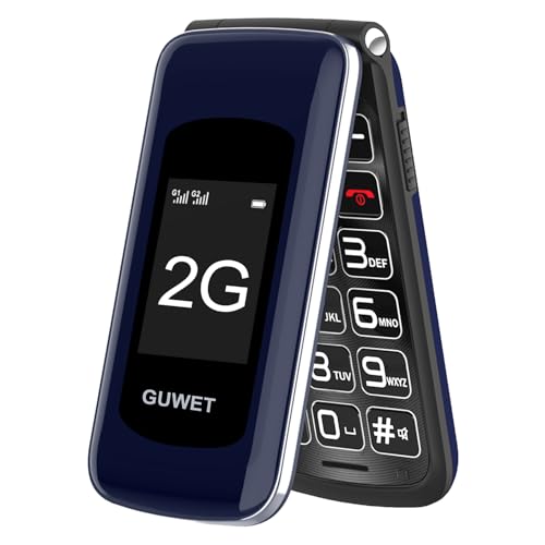 Guwet 2G Big Button Mobile Phone for Elderly, Flip Phone Only Supports Mobile Carriers with 2G Base Stations, Basic Mobile Phone with SOS Emergency Button, Dual-Screen, 1600mAh Battery, Blue