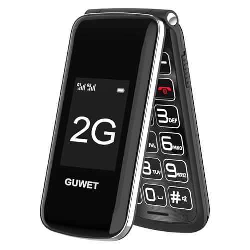 Guwet 2G Big Button Mobile Phone for Elderly, Flip Phone Only Supports Mobile Carriers with 2G Base Stations, Basic Mobile Phone with SOS Emergency Button, Dual-Screen, 1600mAh Battery, Black