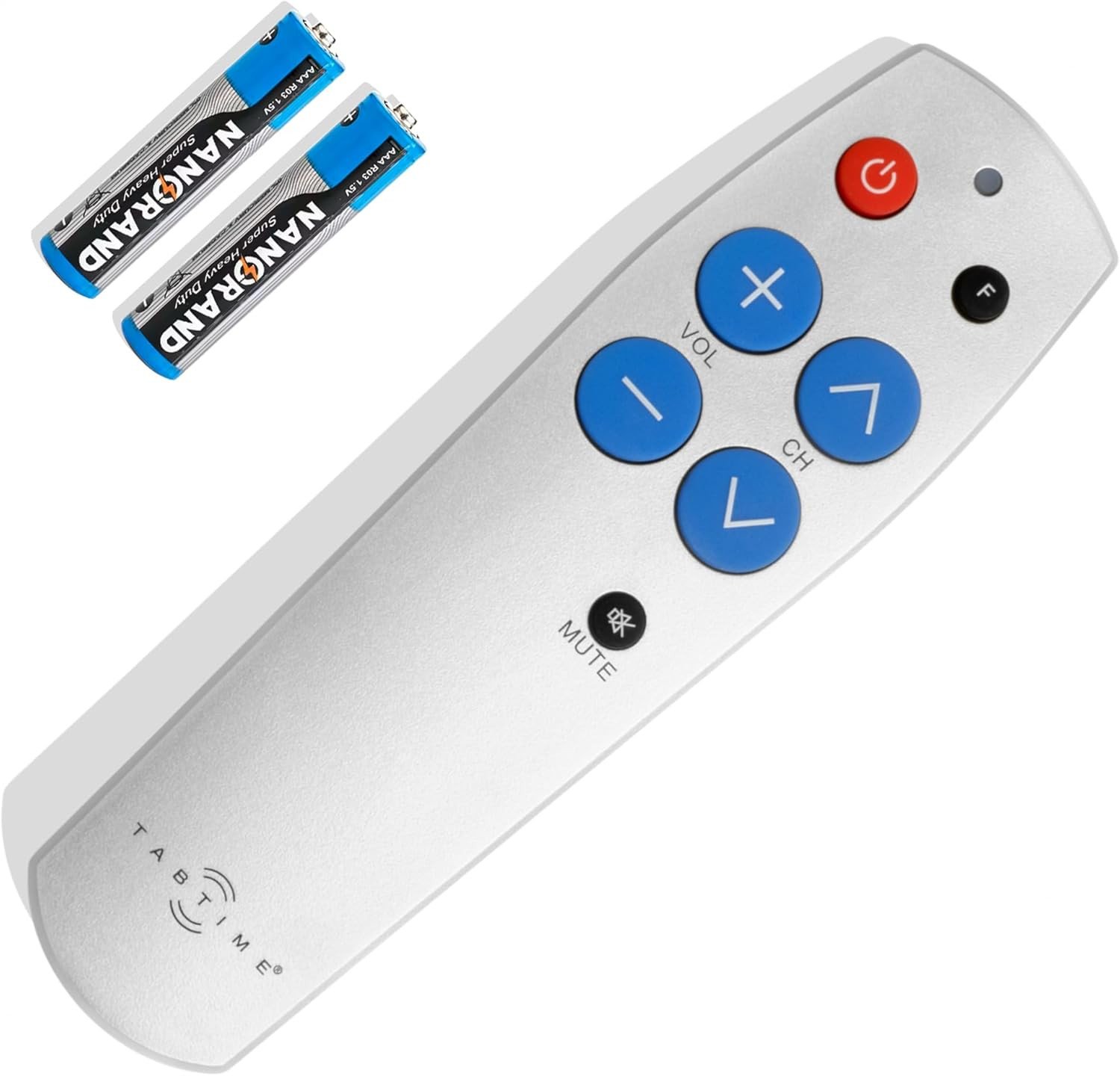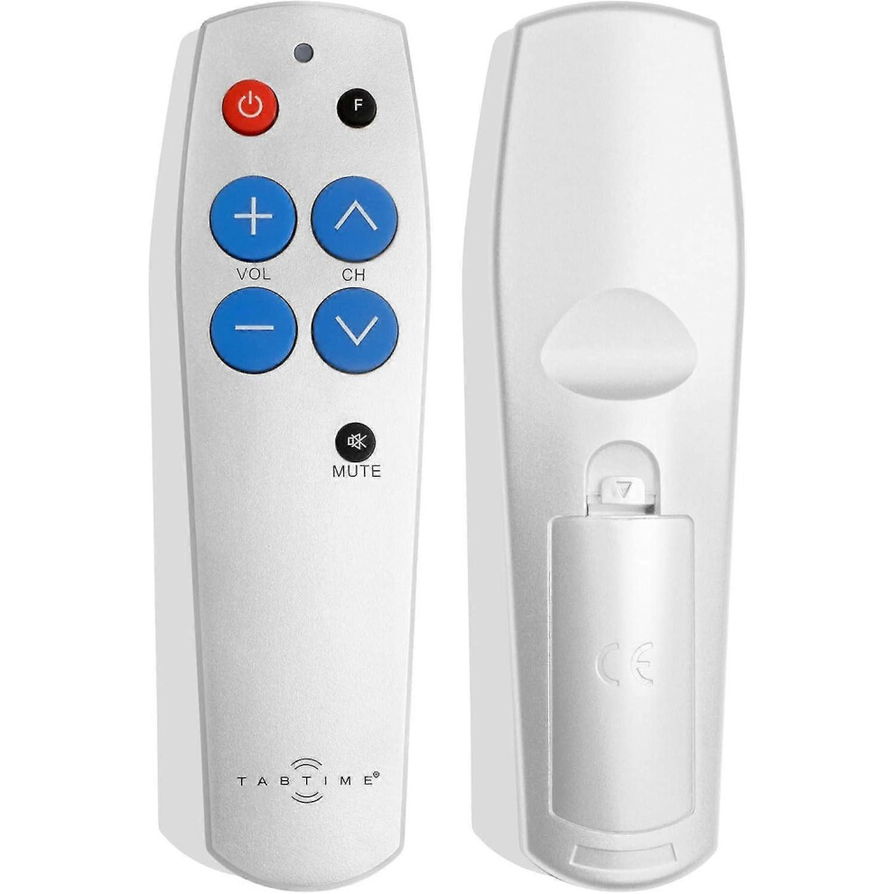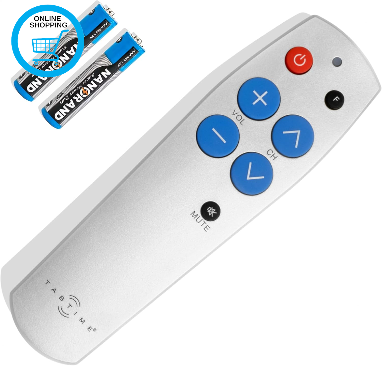 TabTime Big Button TV Remote Control - Easy to Use and Set Up - Universal - Basic Television Remote Control - Dementia Friendly Gifts (Silver)