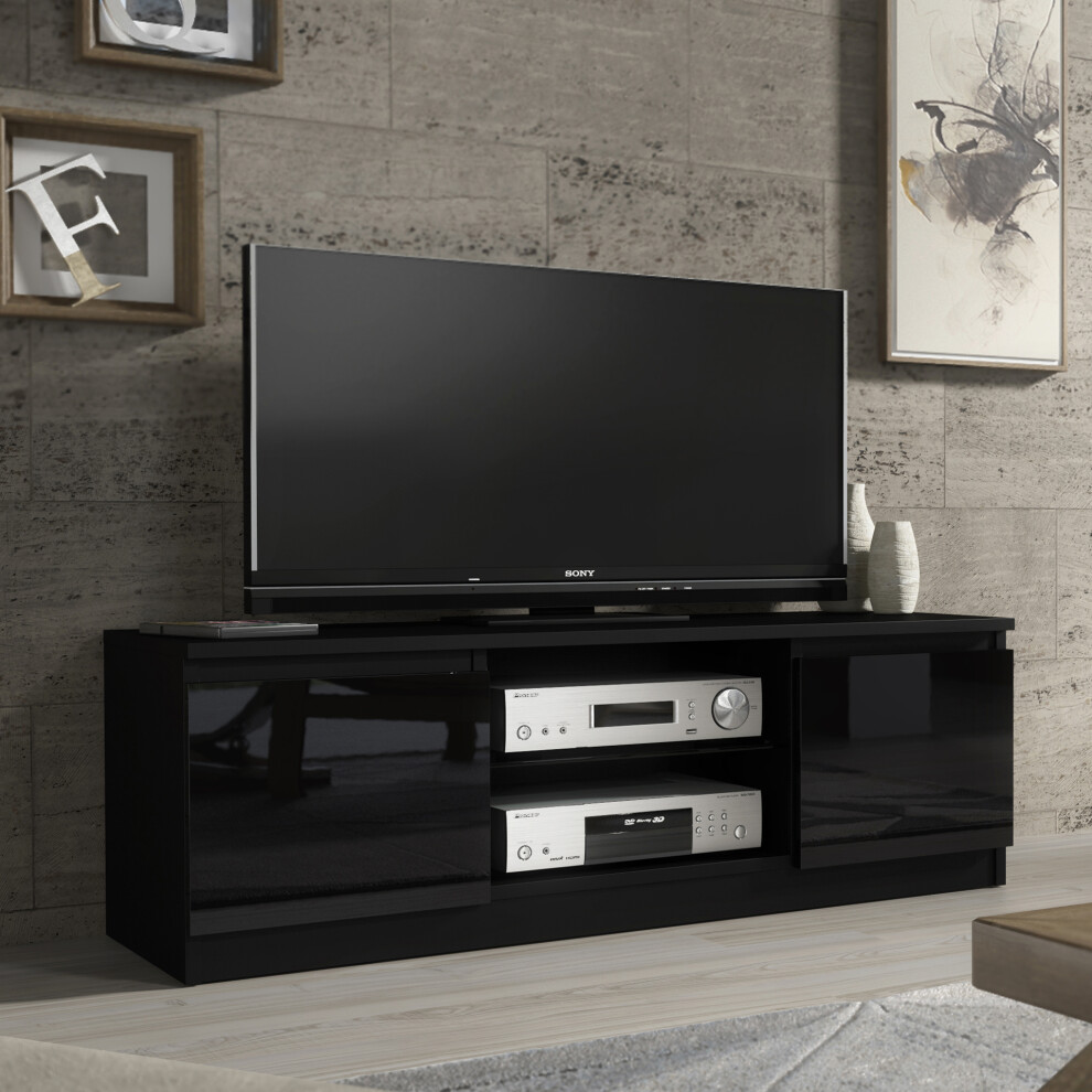 TV Stand 120cm Matt Black Body Gloss Black Doors NO LED Compact Modern Unit VELERA