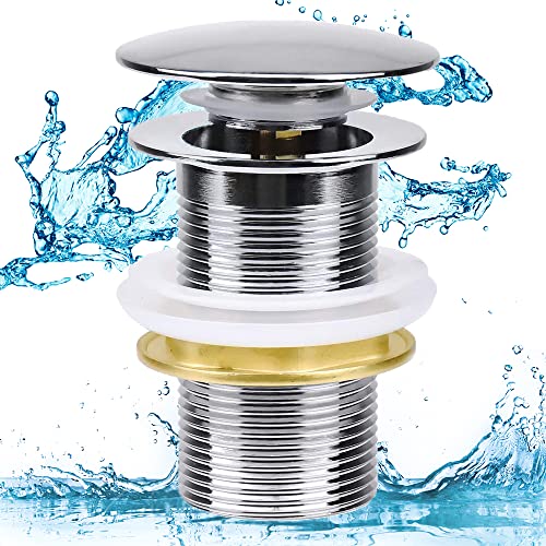 Bathroom Sink Plug Replacement, Brass Universal Pop Up Drain Stopper with Bounce Core, Bath Basin Plug Filter with Basket Hair Catcher, Push Type Sink Strainer No Overflow for Bathroom,34-38mm