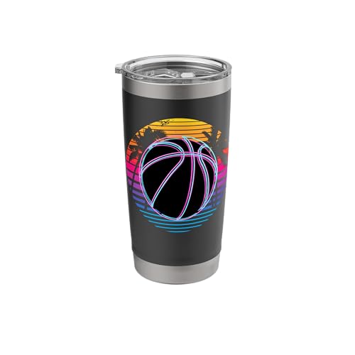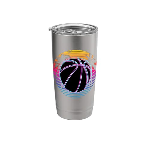 Retro Beach Palm Basketball Basket Hoop Player Stainless Steel Insulated Tumbler