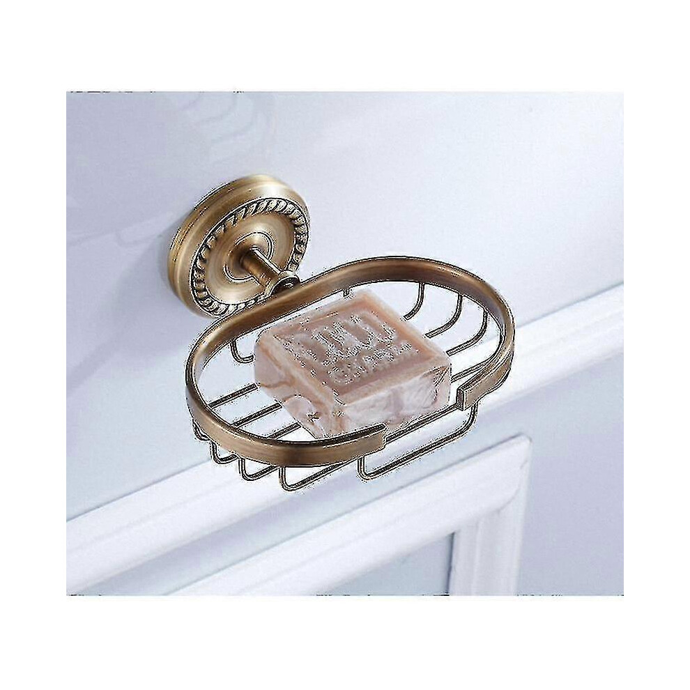 Antique Brass Bathroom Accessories Set - Robe Hook, Towel Bar, Paper Holder, Soap Basket, Toilet Paper Holder for Complete Bathroom Organization