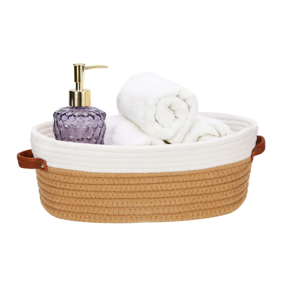 Oradrem Cotton Rope Bathroom Decor Basket Toilet Paper Holder Basket Farmhouse Home Decor Organizing Baskets 13 x5.9 x4 Brown Stitching White