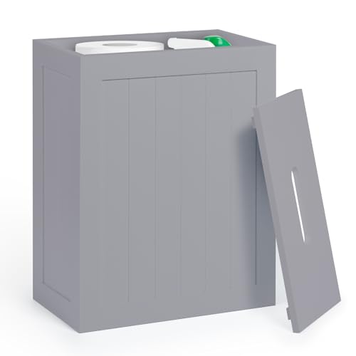 woodluv Toilet Roll Storage, Toilet Paper Storage Basket - Slimline Toilet Paper Holder, Wooden Bathroom Storage boxes, Grey