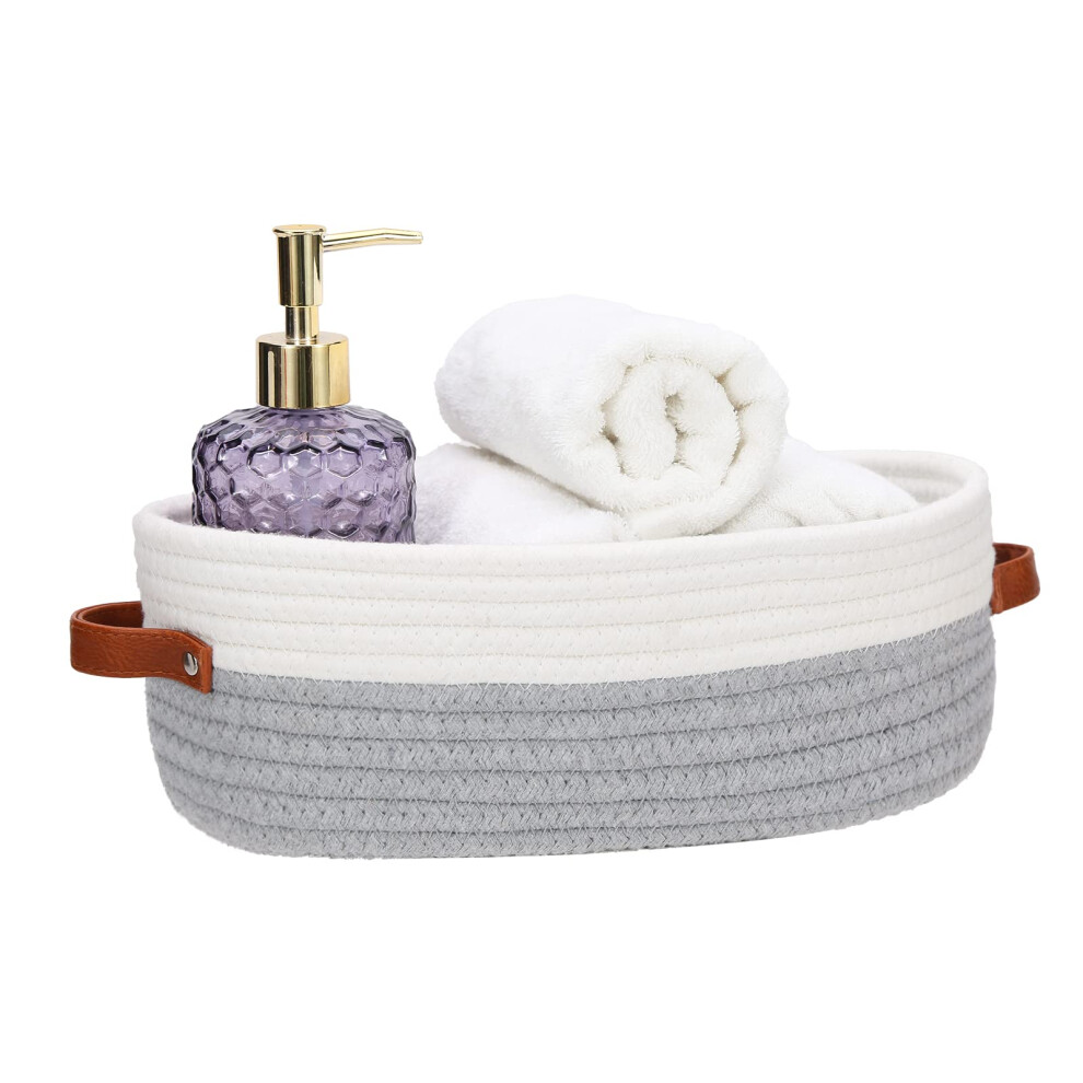 Woven Storage Basket,Cotton Rope Small Storage Basket,Minimalist Toilet Paper Basket,Cute Storage Baskets (Grey)