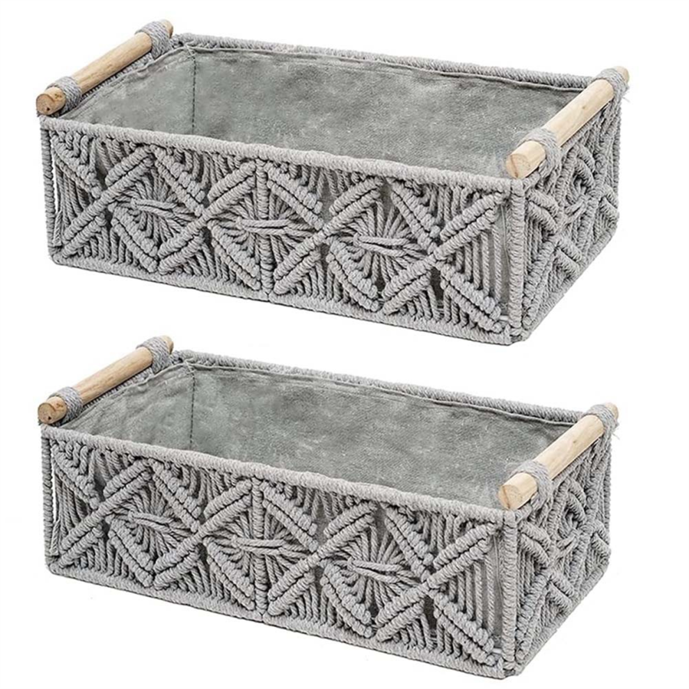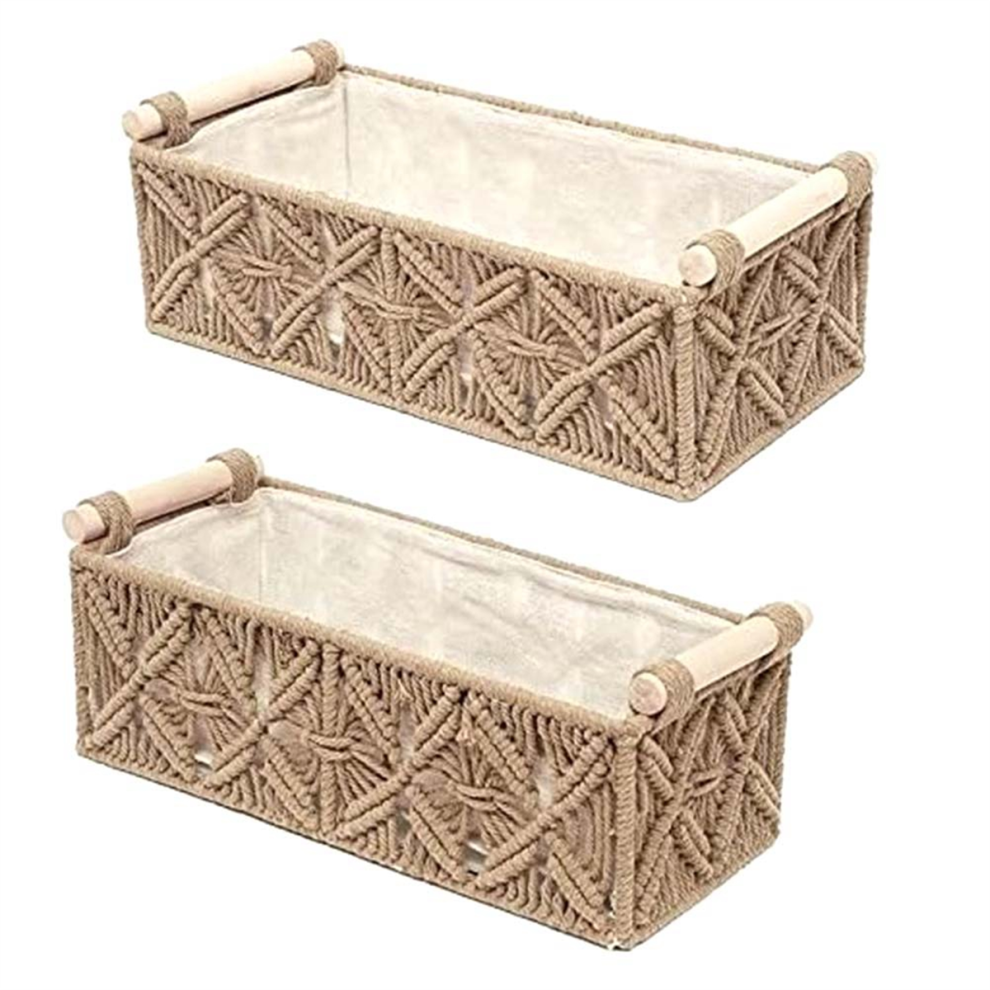 Akfldms Macrame Storage Basket Boho Decor Baskets for Organizing Woven Decorative Basket for Countertop Toilet Paper Basket B Large Size 34 X 17 X 10cm, Small Size 31 X 14 X 10cm