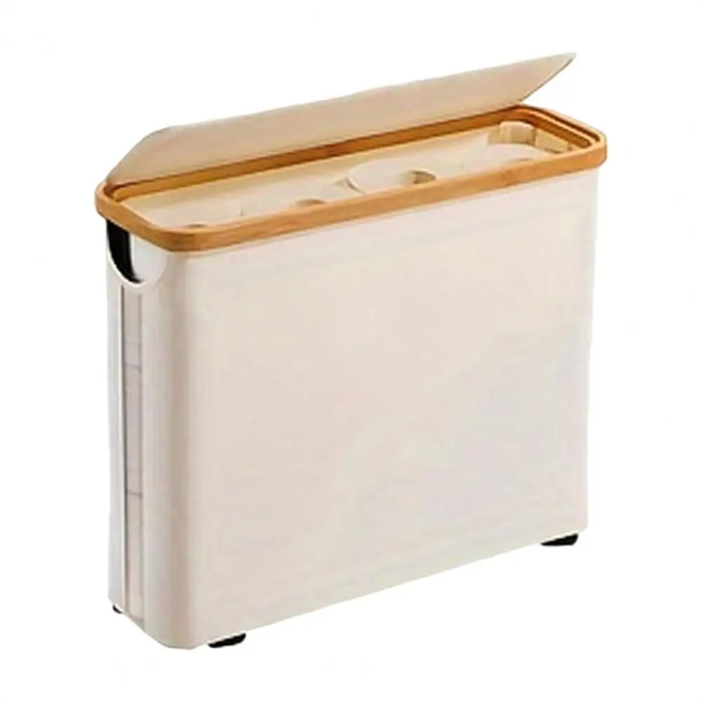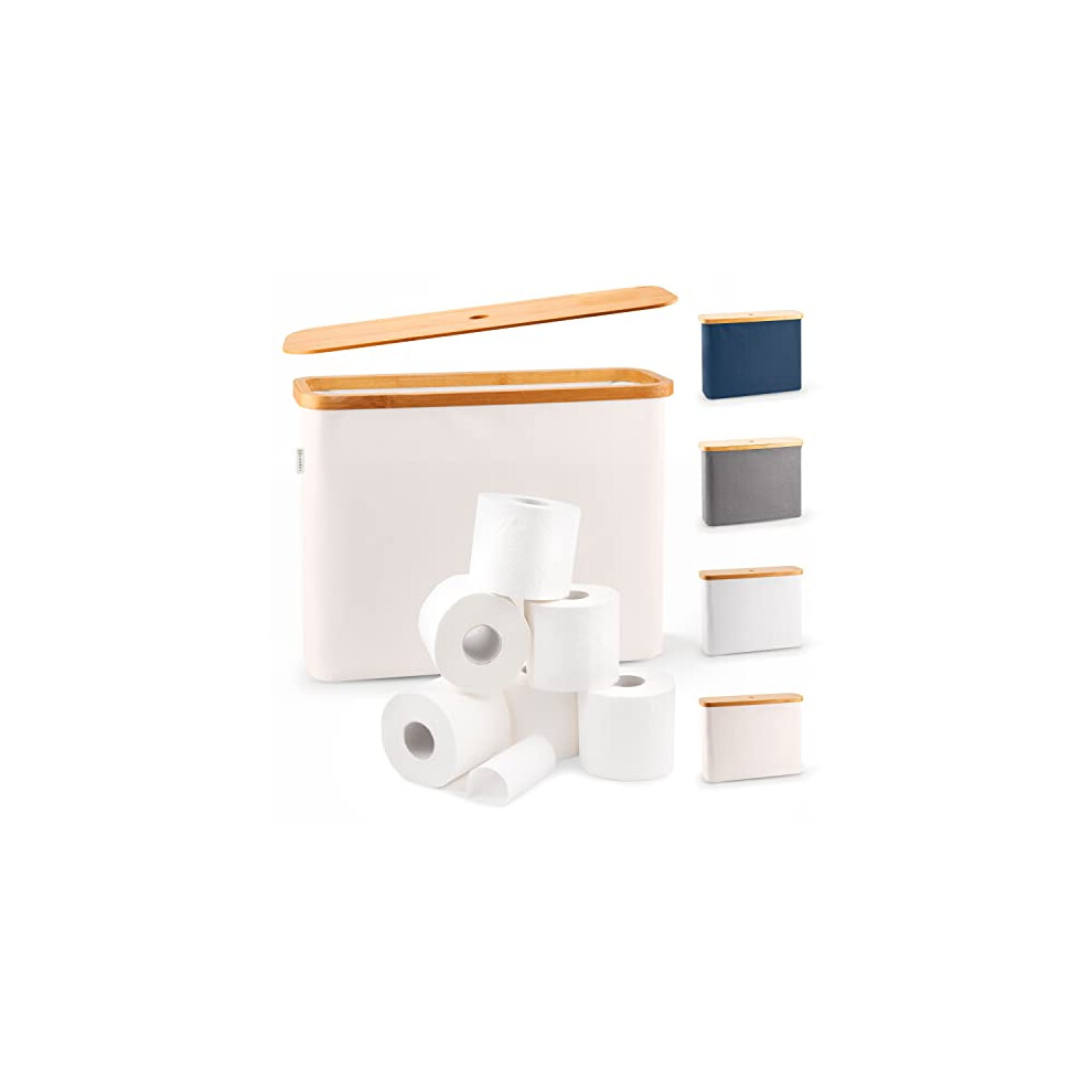 Laundry Basket Bamboo Toilet Paper Holder with Lid - Rectangular Bathroom Organizer Basket for Tissues & Accessories for home use(WHITE)