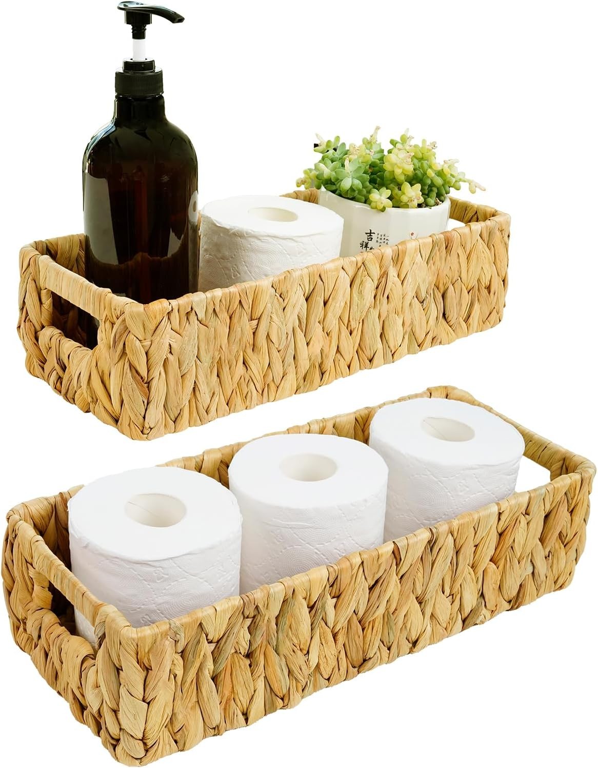 Small Water Hyacinth Basket for Toilet Paper, Wicker Baskets for Organizer with