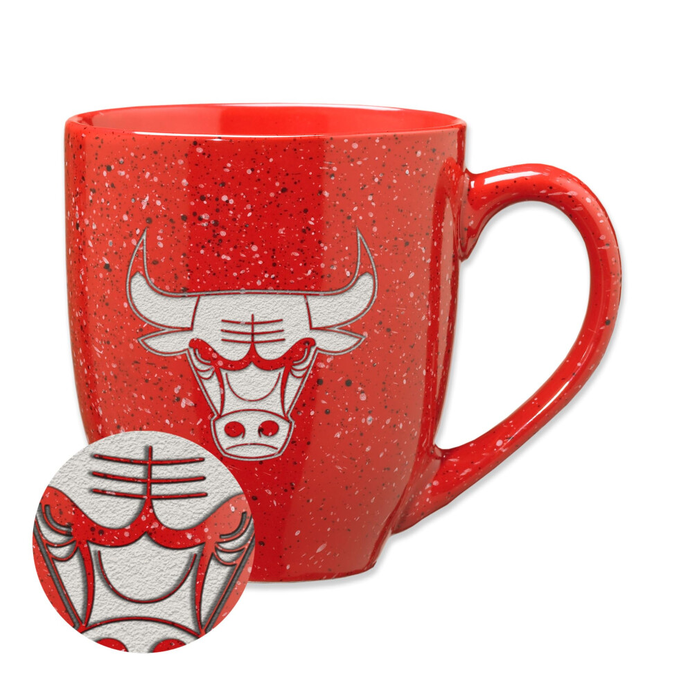 Rico Industries NBA Basketball Chicago Bulls Primary 16 oz Team Color Laser Engraved Speckled Ceramic Coffee Mug