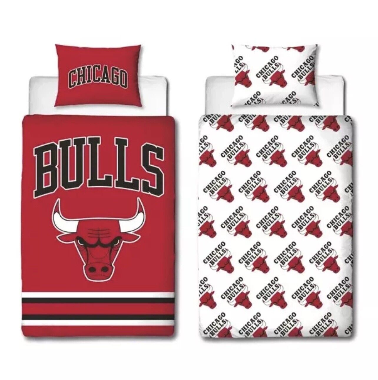 NBA Basketball Chicago Bulls Single Reversible Duvet Set Red White Black