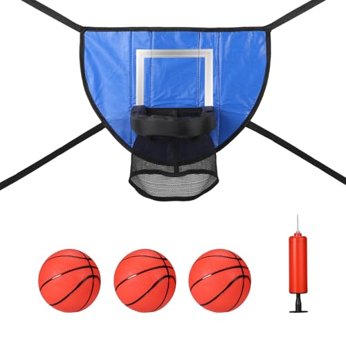 lasuroa Trampoline Basketball Hoop Set, with Mini 3 Basketballs and Pump, Waterproof Trampoline Basketball Hoop Attachment Net Goal for Indoor Outdoor Trampoline Accessories Basketball for All Ages