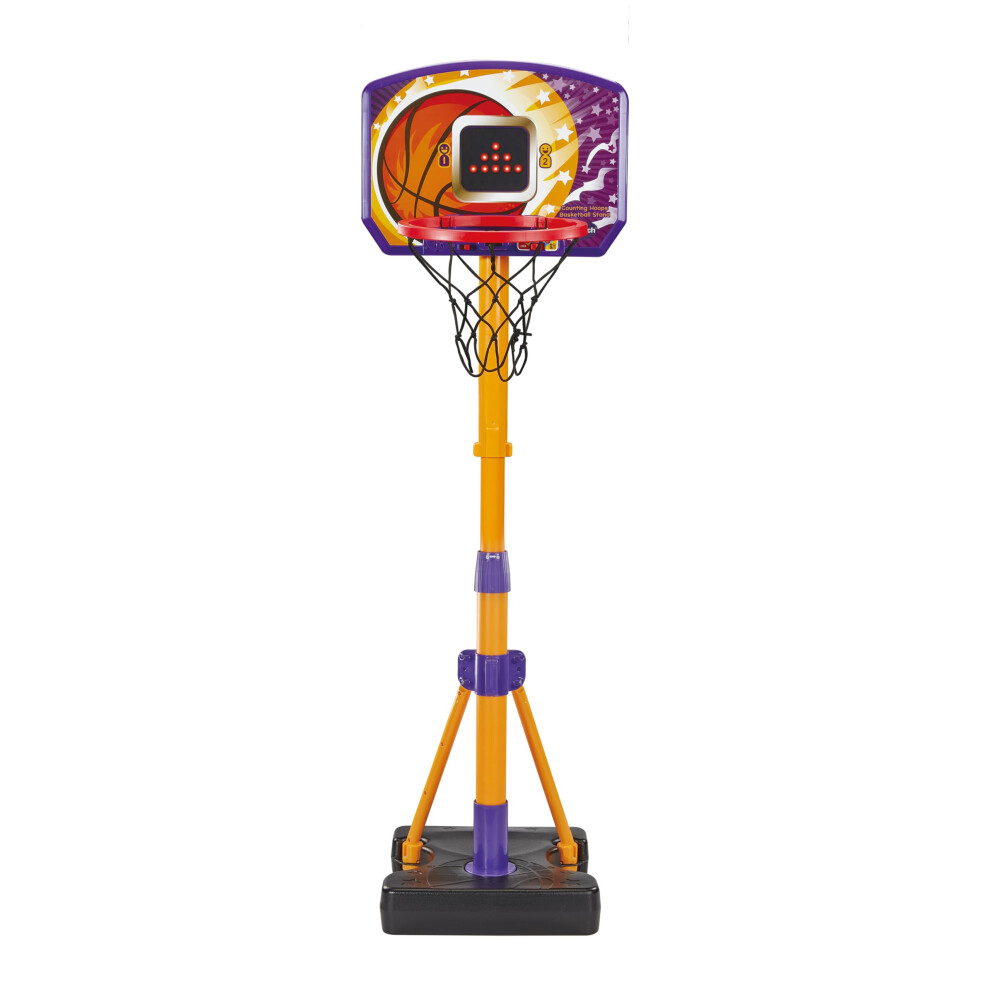 VTech Counting Hoops Basketball Stand, Adjustable Basketball Hoop & Stand with Electronic Backboard & LED Screen, 3 Games, Sound Effects & Light Show,