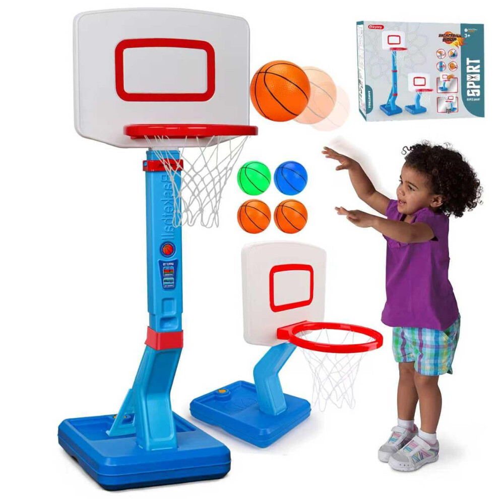 Basketball Hoop and Stand for Kids Outdoor Indoor Water Pool Adjustable Basketball hoop Stand, Toddler Basketball Hoop with 4 Basketballs, Outdoor Toys Gift for Ages 3 4 5 6 Kids Boy (Bleu)