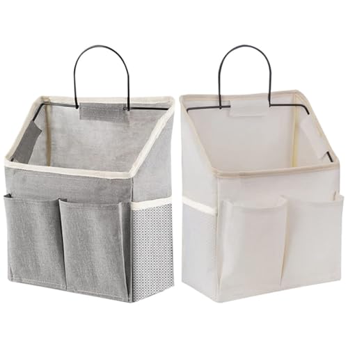Homoyoyo 2pcs Foldable Fabric Hanging Wall Organizer Bags, Multi-pocket Storage for Bedroom and Bathroom, Nail-free Wall Mounted Hanging Baskets in Grey and White