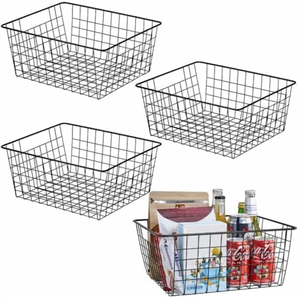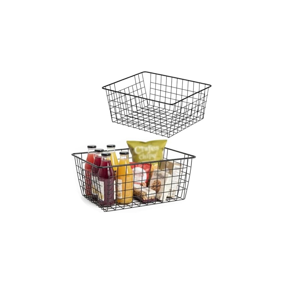 Kitchen Wire Baskets Farmhouse Decor Metal Food Storage Organizer,Household Refrigerator Bin with Built-in Handles for Cabinets,Pantry,Bathroom,Black