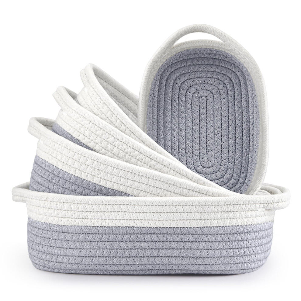 Set Of 5 Cotton Rope Woven Storage Baskets With Handles For Bathroom Nursery Kitchen And Bedroom In Off White And Gray