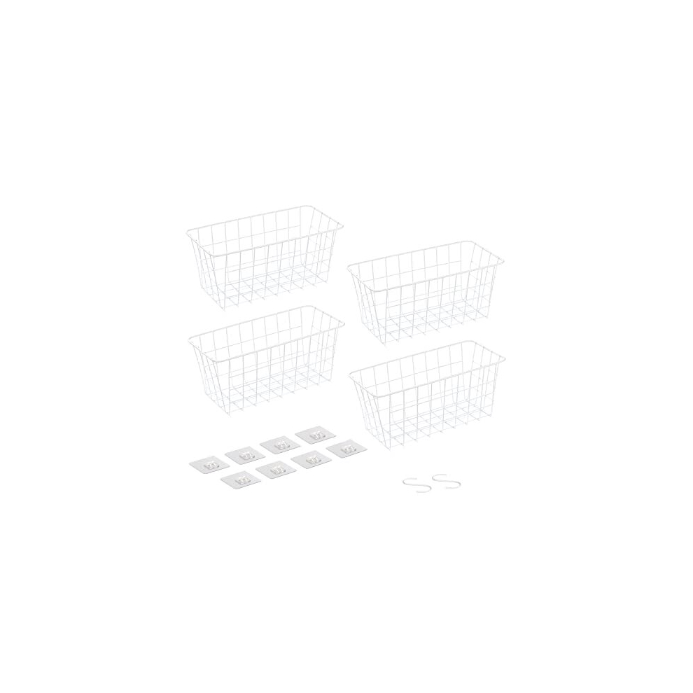 Adhesive Metal Storage Baskets (Set of 4) - Wall Mounted Wire Basket Organiser for Hanging in Kitchen, Bathroom, Caravan - 30 x 14 x 13.5 cm