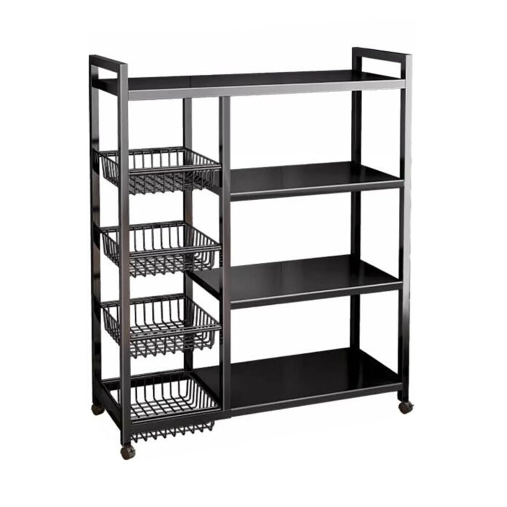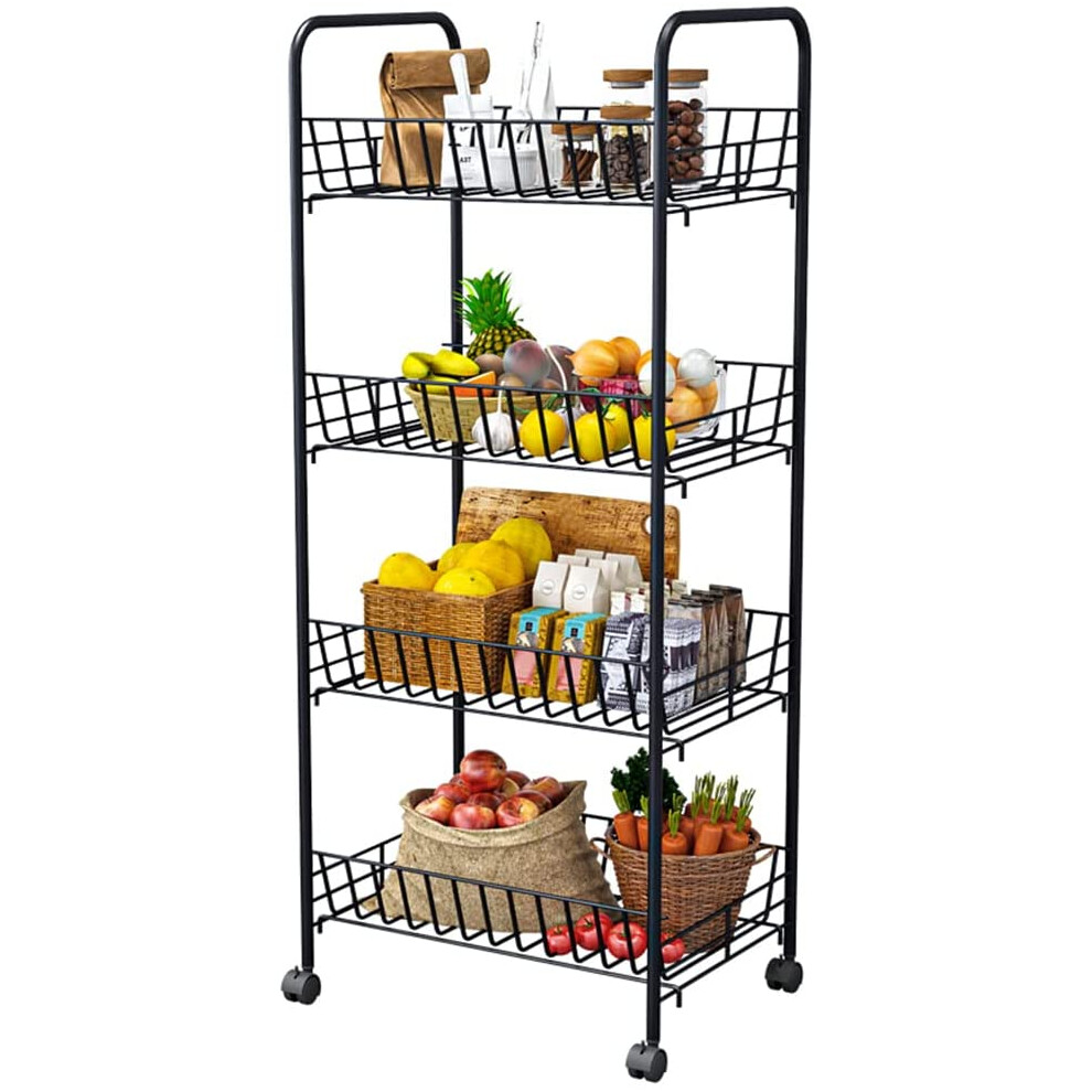 Height 135cm/53.1in 4-Tier Adjustable Metal Storage Shelves with Wheels and Wire Baskets for Kitchen, Garage, Pantry, and Bathroom