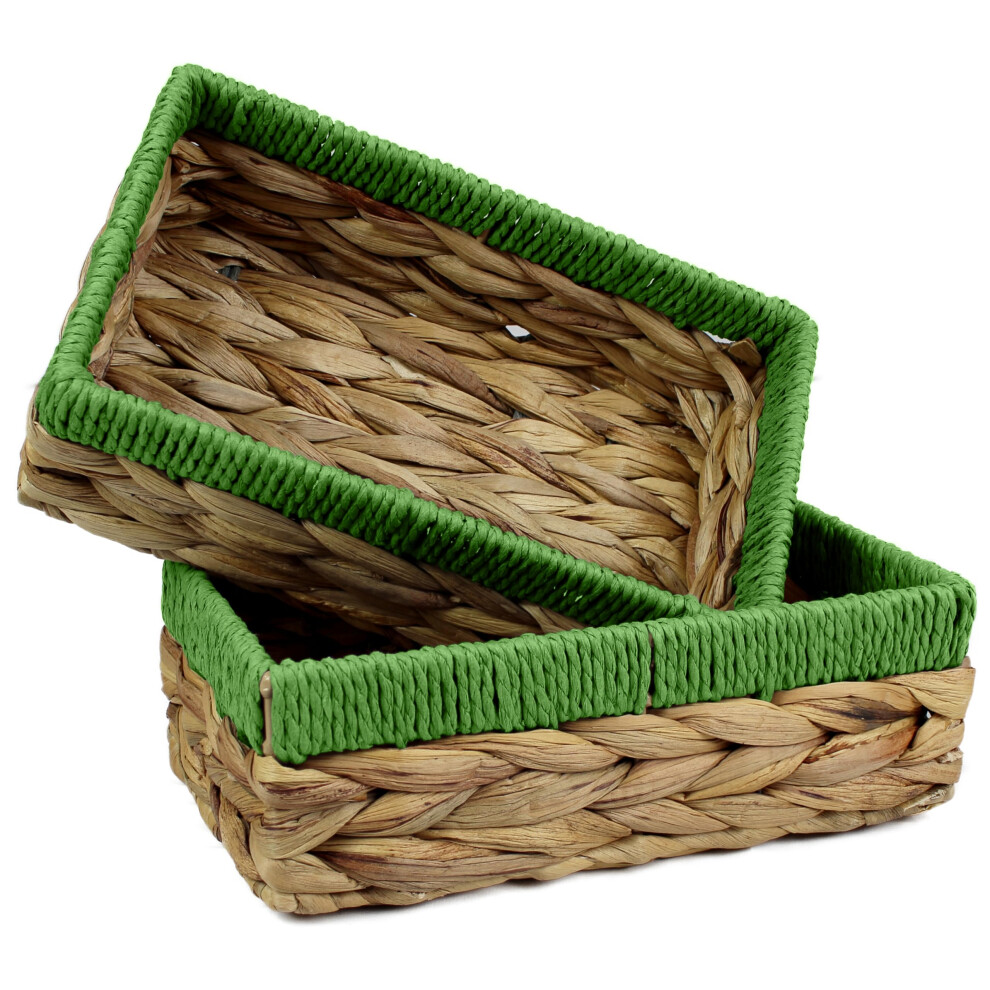 Pop-it-in-a-Pelican Rectangular Water Hyacinth Small Baskets for Storage Natural Green Wicker Basket Shelves Open Decorative Gift Box Small Bathroom
