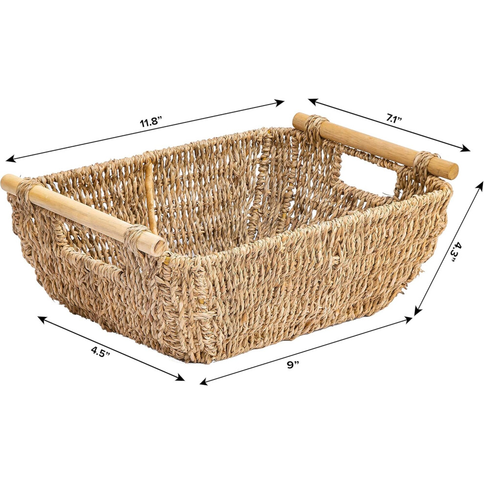 Hand-Woven Seagrass Wicker Baskets with Handles, Eco-Friendly Decorative Baskets Perfect for Versatile Storage in Bathroom, Living Room, Kitchen,