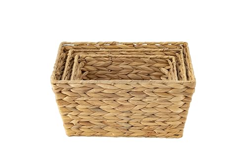 ECHTWERK Set of 3 Water Hyacinth Storage Baskets, Rectangular, Natural, Woven Baskets in S/M/L, Stackable for Bathroom, Office & Living Room