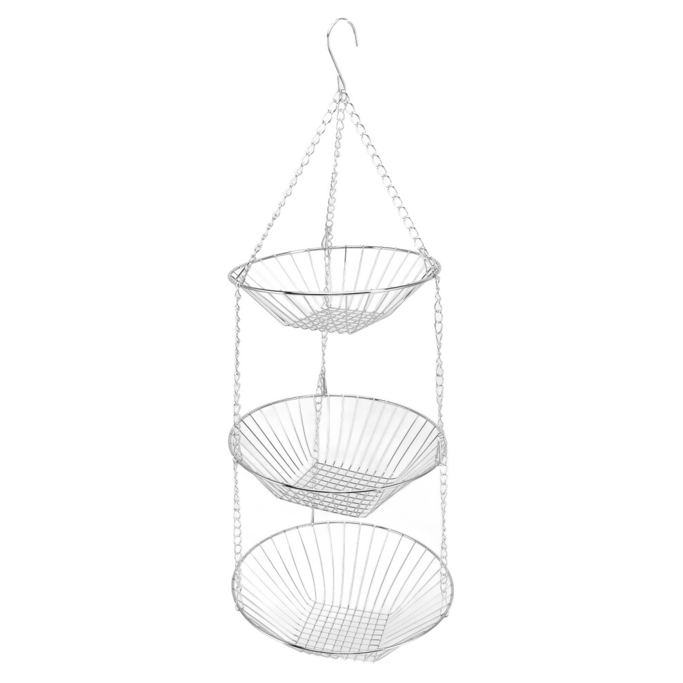 Multifunctional 3-Tier Kitchen Hanging Fruit Baskets, Space Saving Iron Wire Storage Organizer, Adjustable Chains with Wide Use in Kitchen Bathroom Pa