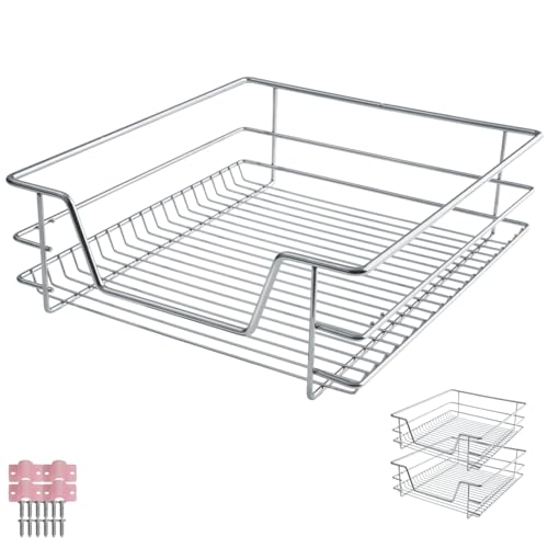tectake® Set of 2 Pull-Out Drawer Baskets with Telescopic Rails, Wire Storage Baskets in Chrome-Plated Steel, Easy Assembly, Ideal Cupboard Organiser for Kitchen, Bedroom, Bathroom, Pantry - W50 cm