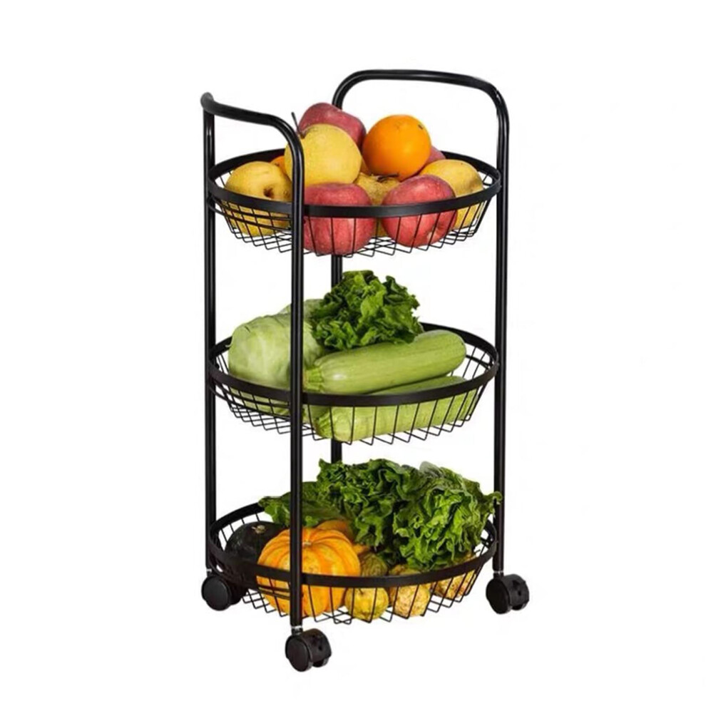 3-Tier Kitchen Shelf Cart with Movable Storage Baskets for Fruits, Vegetables, and Organizing in Kitchen, Bathroom, Living Room