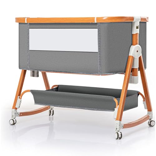 Fiauli Baby Cribs for Newborn 0-3years,Baby Bedside Crib with Large Curvature Cradle, Height Adjustable Bedside Bassinet, Movable Beside Bassinet with Mosquito Net (Grey) 1 Set