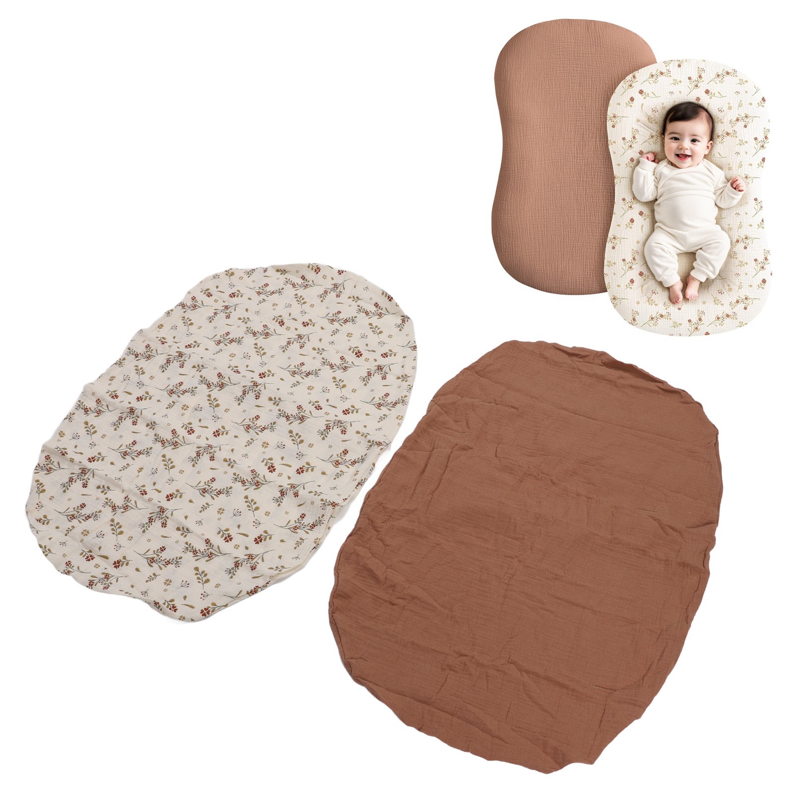 Baby Mattress Cover, Fitted Sheet, Pack of 3, 100% Muslin Cotton,Oeko-Tex 100,Muslin Bassinet Sheets,Bassinet Cover,Pram Mattress Cover,83 x 43 x 10 cm,Fitted Sheet for Prams, Bassinets(Flower)